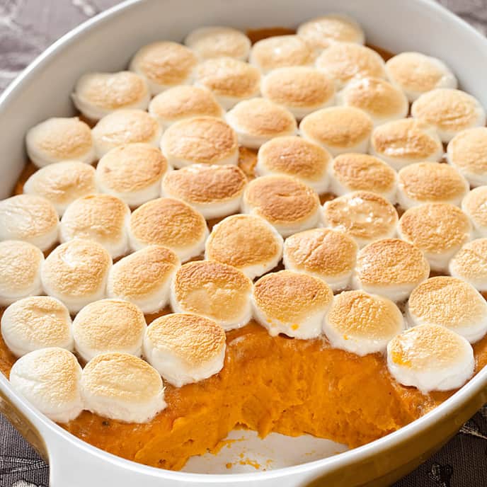Sweet Potato Casserole With Marshmallow Topping Cook S Country Recipe